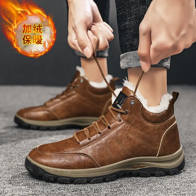 Мужские зимние ботинки на шнуровке, Черные Водонепроницаемые кожаные кроссовки, очень теплые мужские ботинки, уличные мужские походные бот...