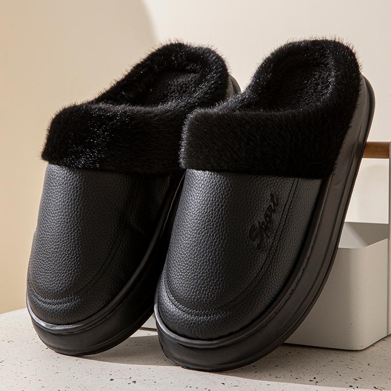 Мужские зимние тапочки для дома, теплая меховая плюшевая подкладка, подошва из ЭВА, домашние тапочки, водонепроницаемый верх, удобная домашняя обувь из пены с эффектом памяти, большие размеры 44/45 чёрный