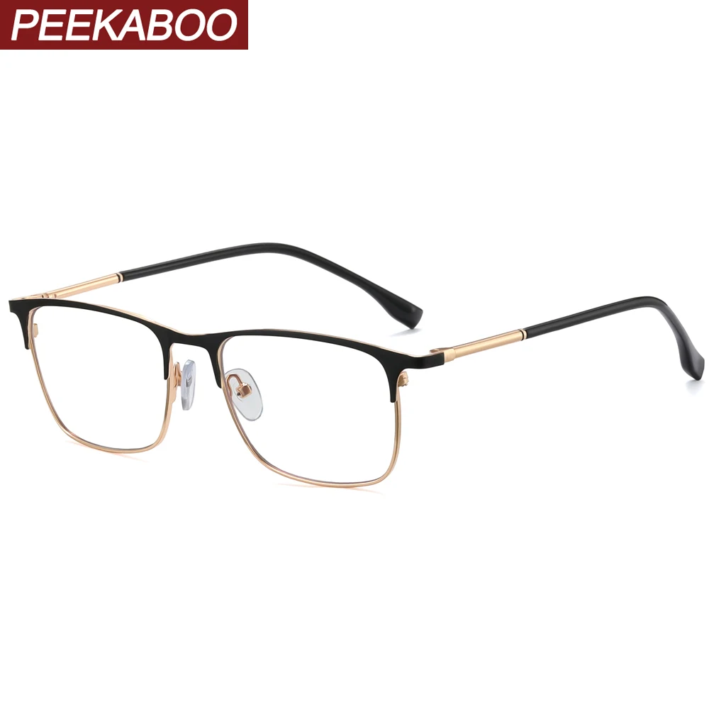 Мужские квадратные оправы для очков Peekaboo, лидер продаж, металлическая оправа, Золотые очки с защитой от синего света, мужские прозрачные лин...