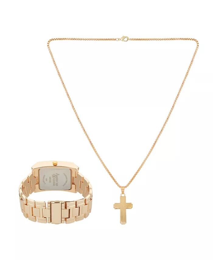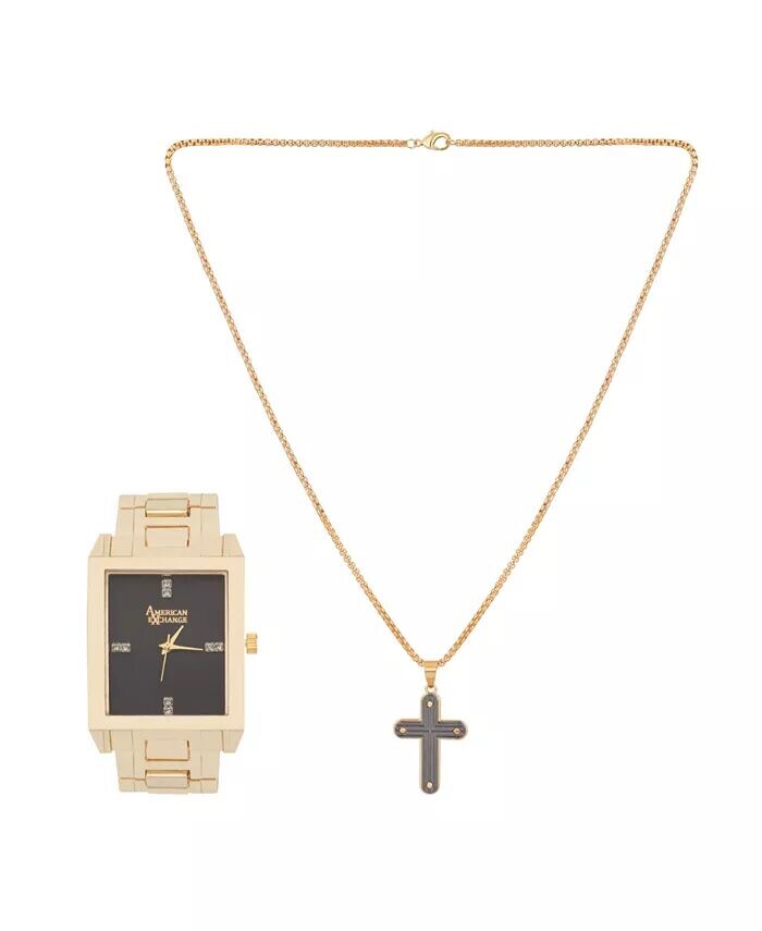 Этот подарочный набор мужских часов и колье-подвески American Exchange представляет собой идеальное сочетание стиля и изысканности. Классические часы оснащены красивым ремешком из металлического сплава, благодаря которому он всегда будет выглядеть остро. Ожерелье имеет усеянный гвоздями крест-подвеска на четырех полированных углах, что обязательно подчеркнет стильность. Этот подарочный набор наверняка станет ценным предметом в его коллекции. Стиль M0105G-22-G27