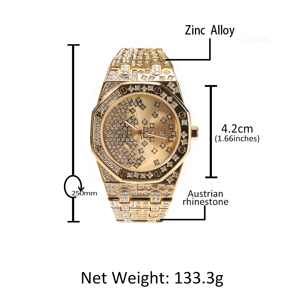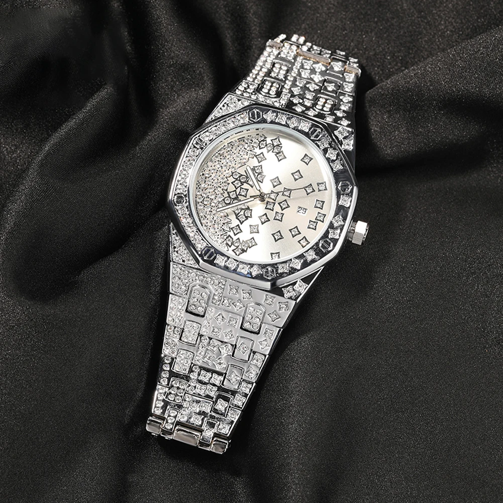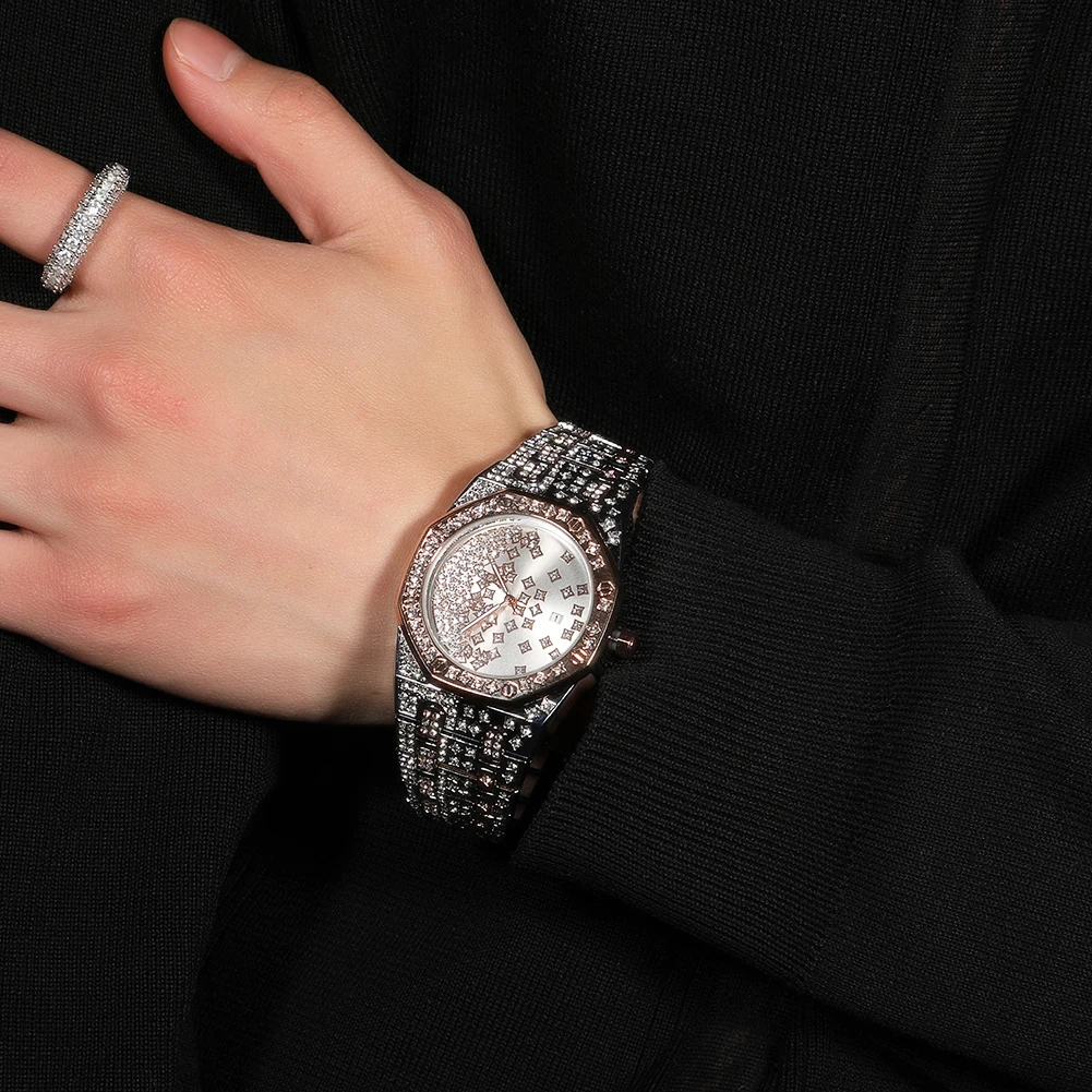 Мужские кварцевые часы с бриллиантами UWIN, Роскошные водонепроницаемые наручные часы с двойным циферблатом