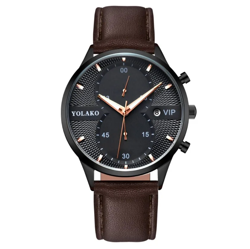 Мужские кварцевые часы Yolako Live с календарем, кожаным ремешком и полосатым циферблатом
