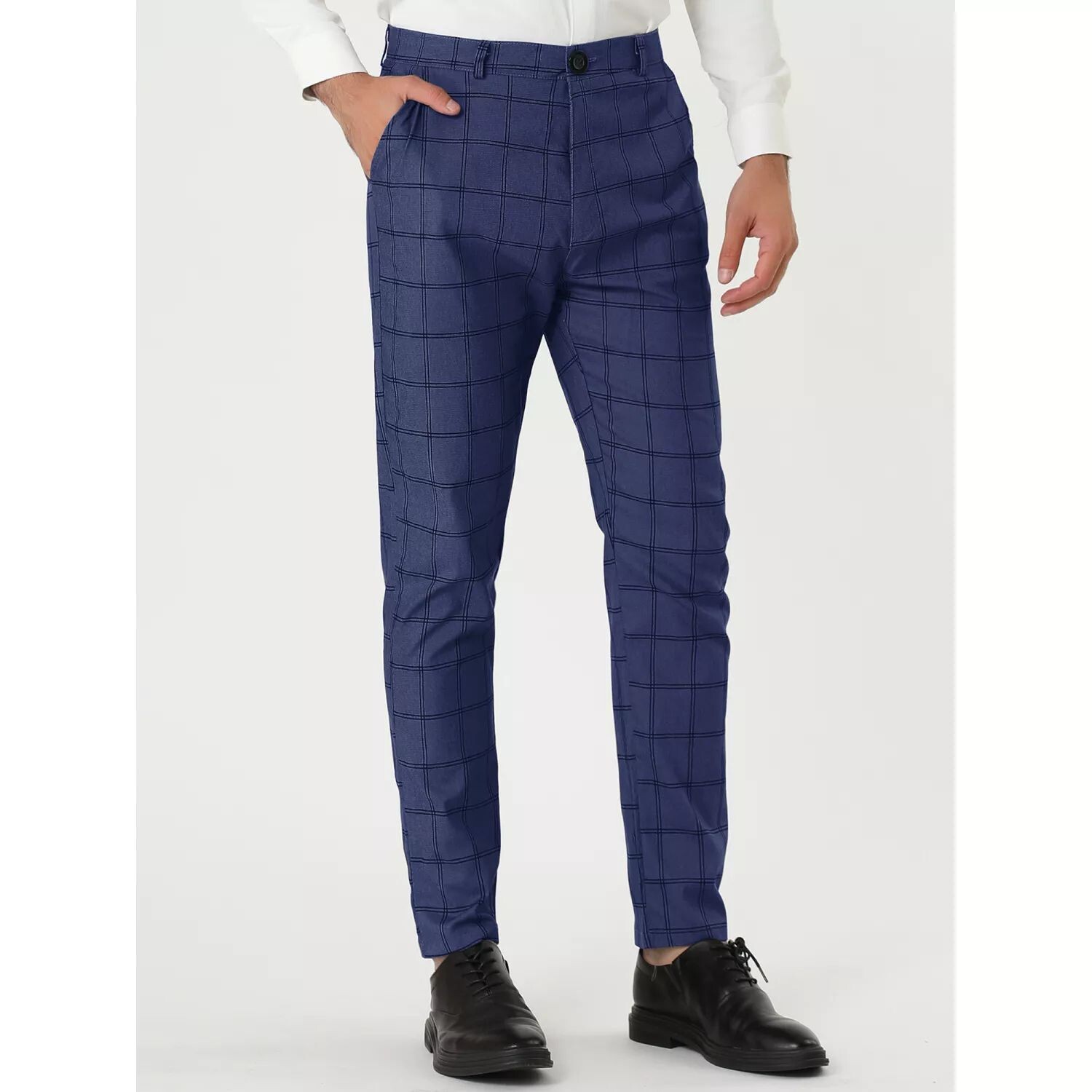 Мужские классические брюки узкого кроя с плоской передней частью в клетку и карманами Lars Amadeus