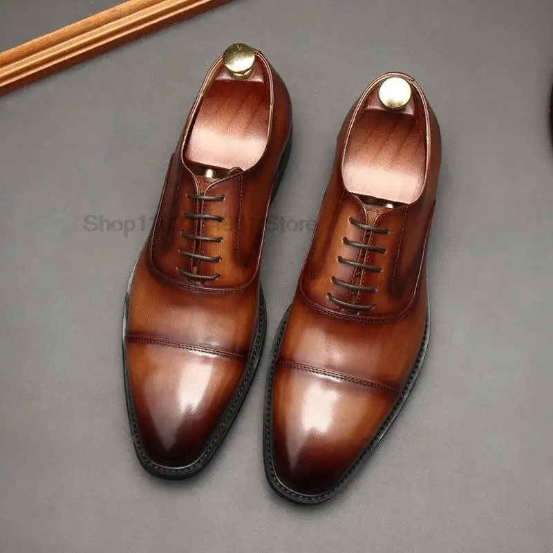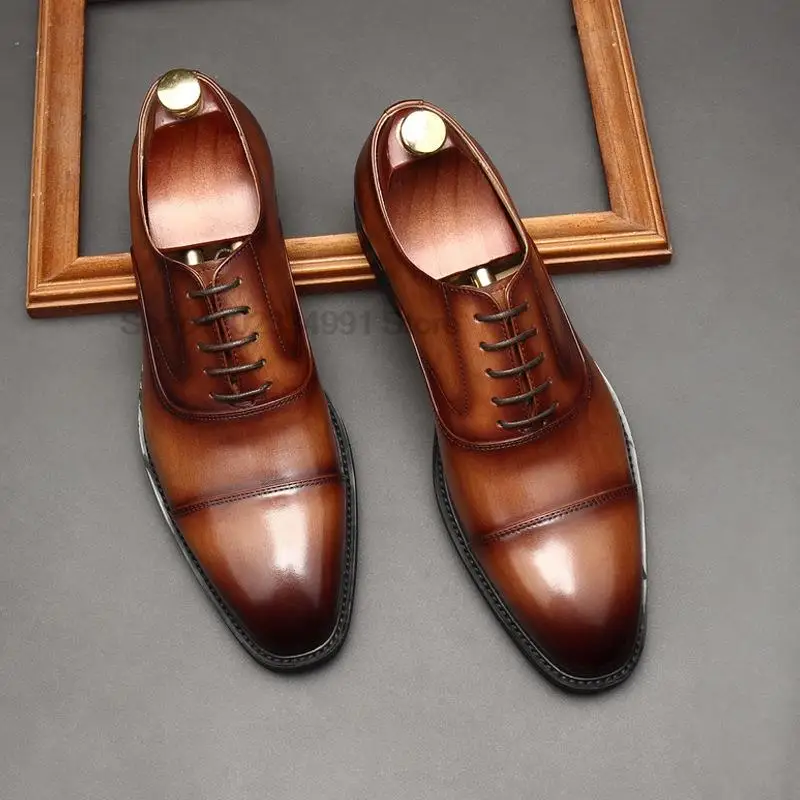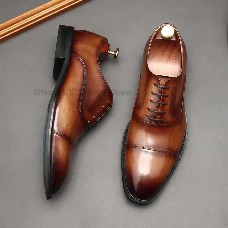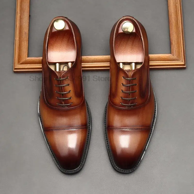 Мужские классические туфли, черные или коричневые оксфорды из натуральной кожи, на шнуровке