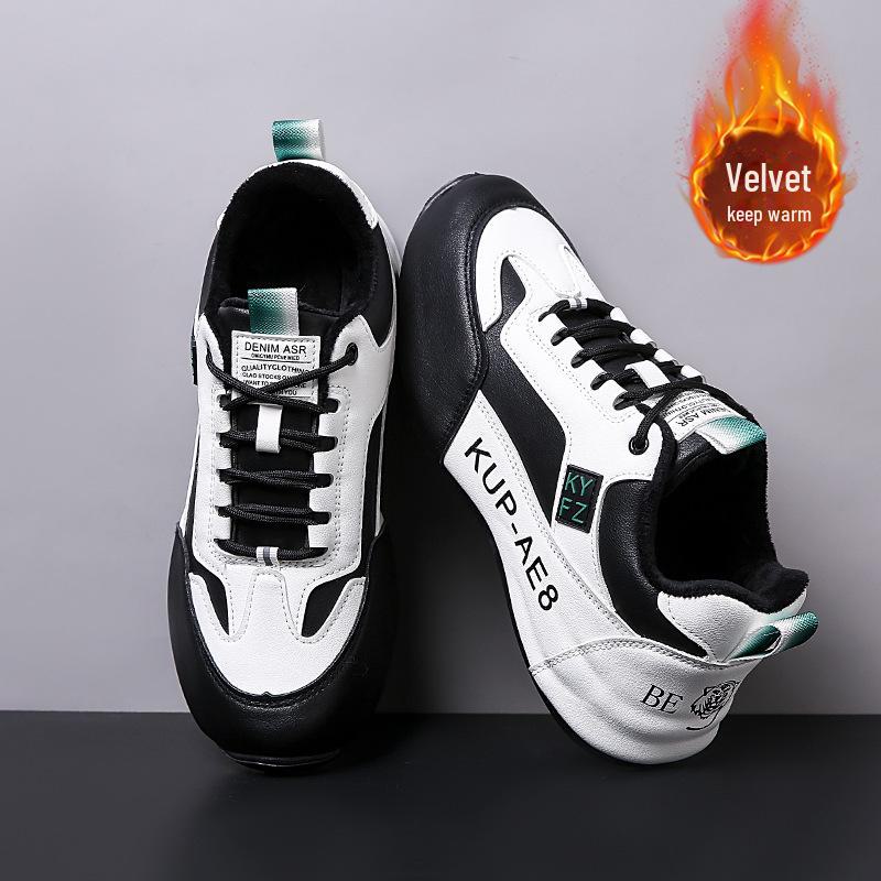 Мужские кожаные повседневные спортивные туфли с бархатной подкладкой, увеличенным ростом и удобной подошвой для осени и зимы 42 белый/чёрный