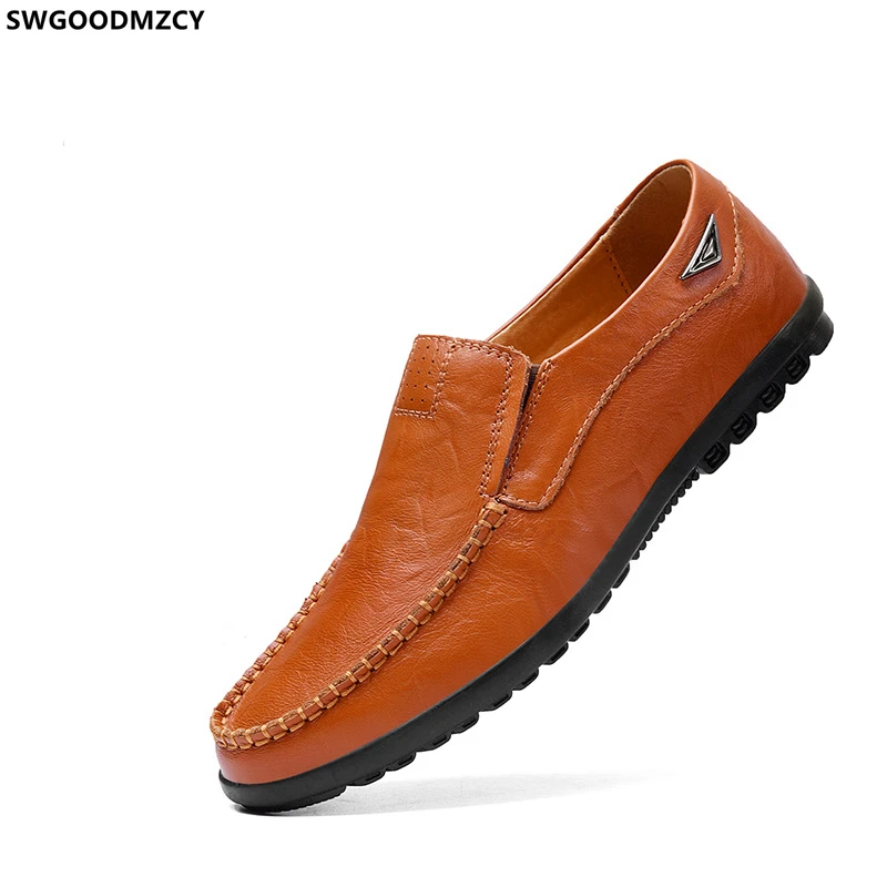 Мужские кожаные туфли без застежки, черные повседневные лоферы, обувь для мужчин, 2024
