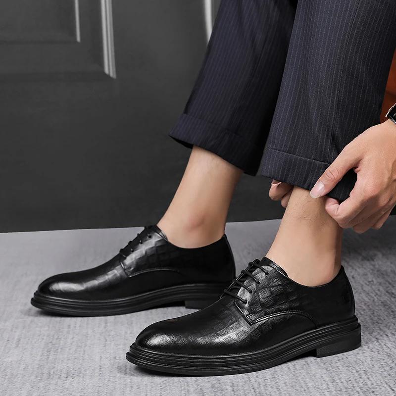 Мужские кожаные туфли на шнуровке, модные деловые туфли, универсальная повседневная обувь, амортизирующая обувь, мужские черные свадебные туфли 10