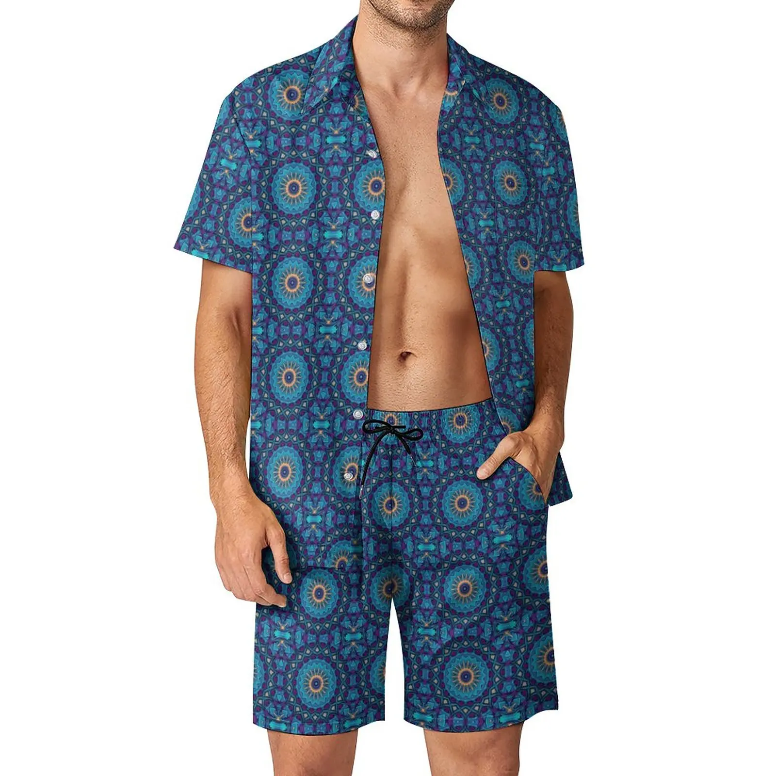 Мужские комплекты Peace Mandala, винтажный повседневный комплект рубашки с цветочным принтом, трендовая пляжная одежда, шорты, летний костюм из двух предметов, женская одежда
