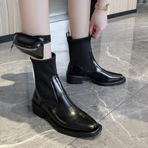 boots women's 2021 brand design shoes catwalk ladies fashion tied packet short woman leather ankle, Black