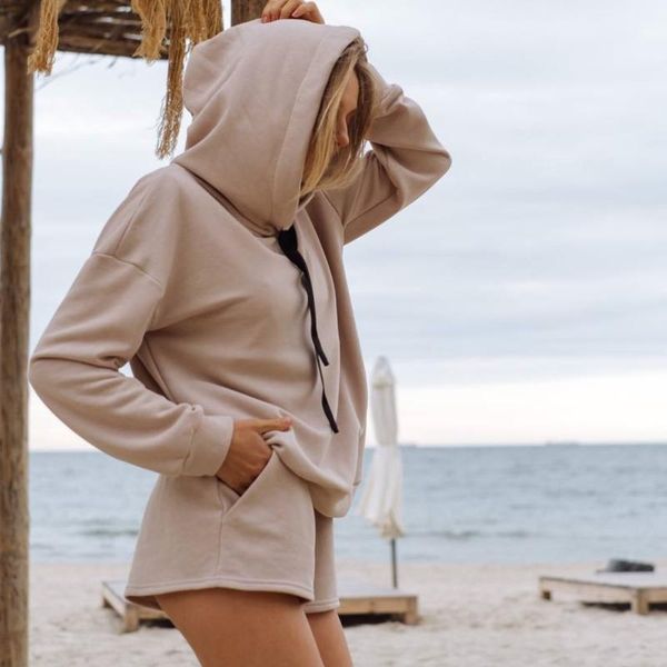 women's tracksuits 2021 women short sets autumn hooded casual shorts sweatsuit long-sleeve + tracksuit female two piece set outfits, Gray