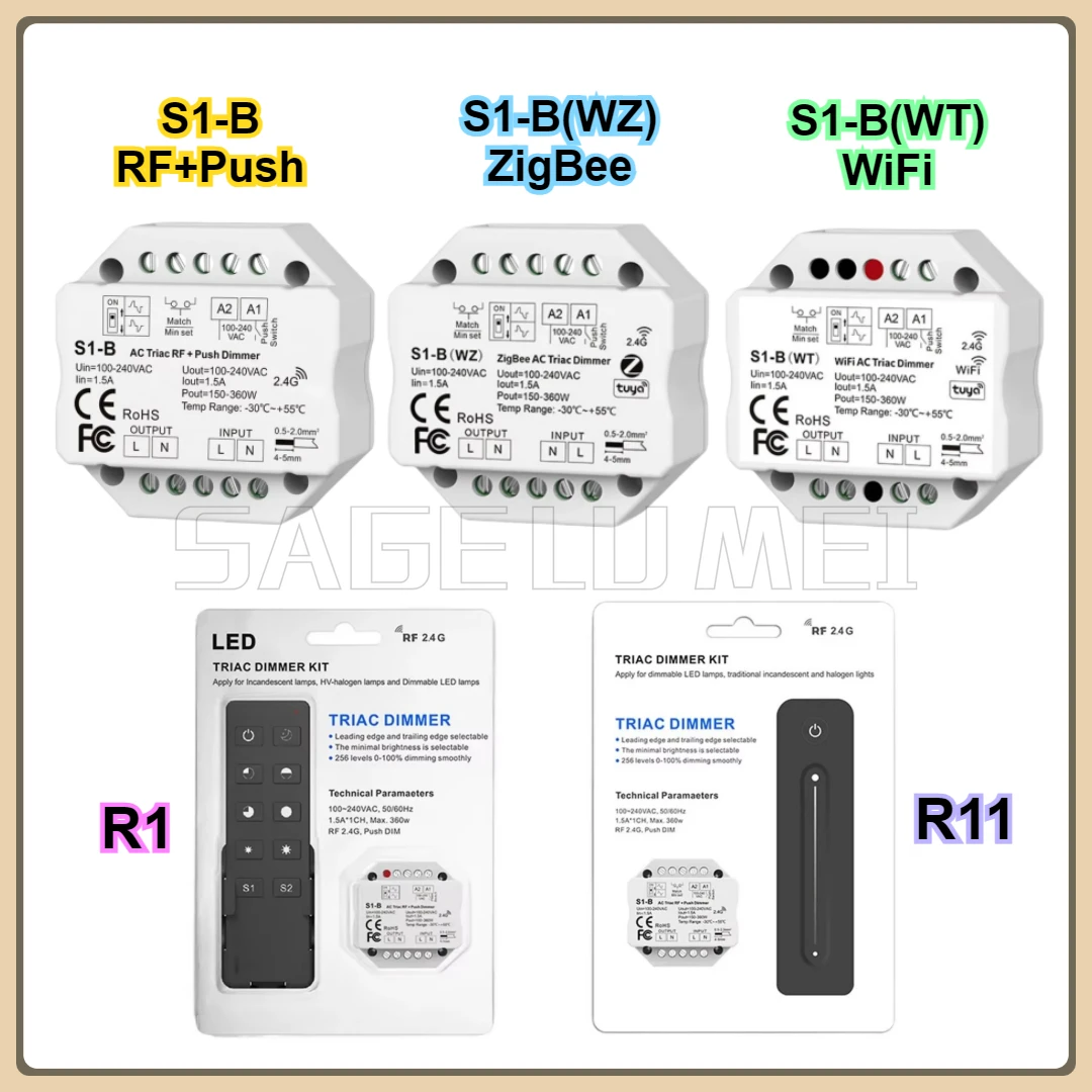 Skydance S1-B/S1-B(WT)/S1-B(WZ) WiFi & RF Push AC Triac Dimmer Tuya APP Switch 2.4G LED Controller For Single Color LEDStrip R11