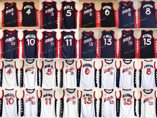 1996 dream three jerseys basketball charles 4 barkley penny 6 hardaway hakeem 15 olajuwon jersey college scottie 8 pippen karl 11 malone, Black