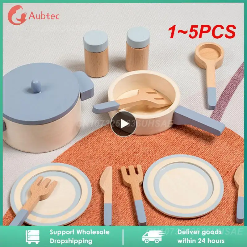 1~5PCS Children Lifelike Kitchen Appliance Educational Set Toys for 3-8 Year Old Wooden Cooking Utensils Bin Tool