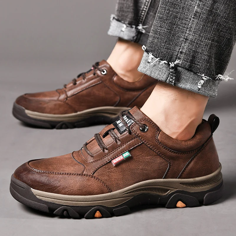 Мужские легкие кроссовки на шнуровке, повседневные Нескользящие кроссовки из искусственной кожи, на вулканизированной подошве, для улицы, ...