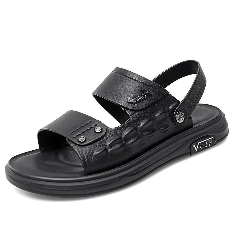 Мужские летние модные сандалии из крокодиловой кожи, тапочки для взрослых, комфортная пляжная обувь с толстой подошвой, нескользящие сандалии из кожи с открытым носком 38 чёрный