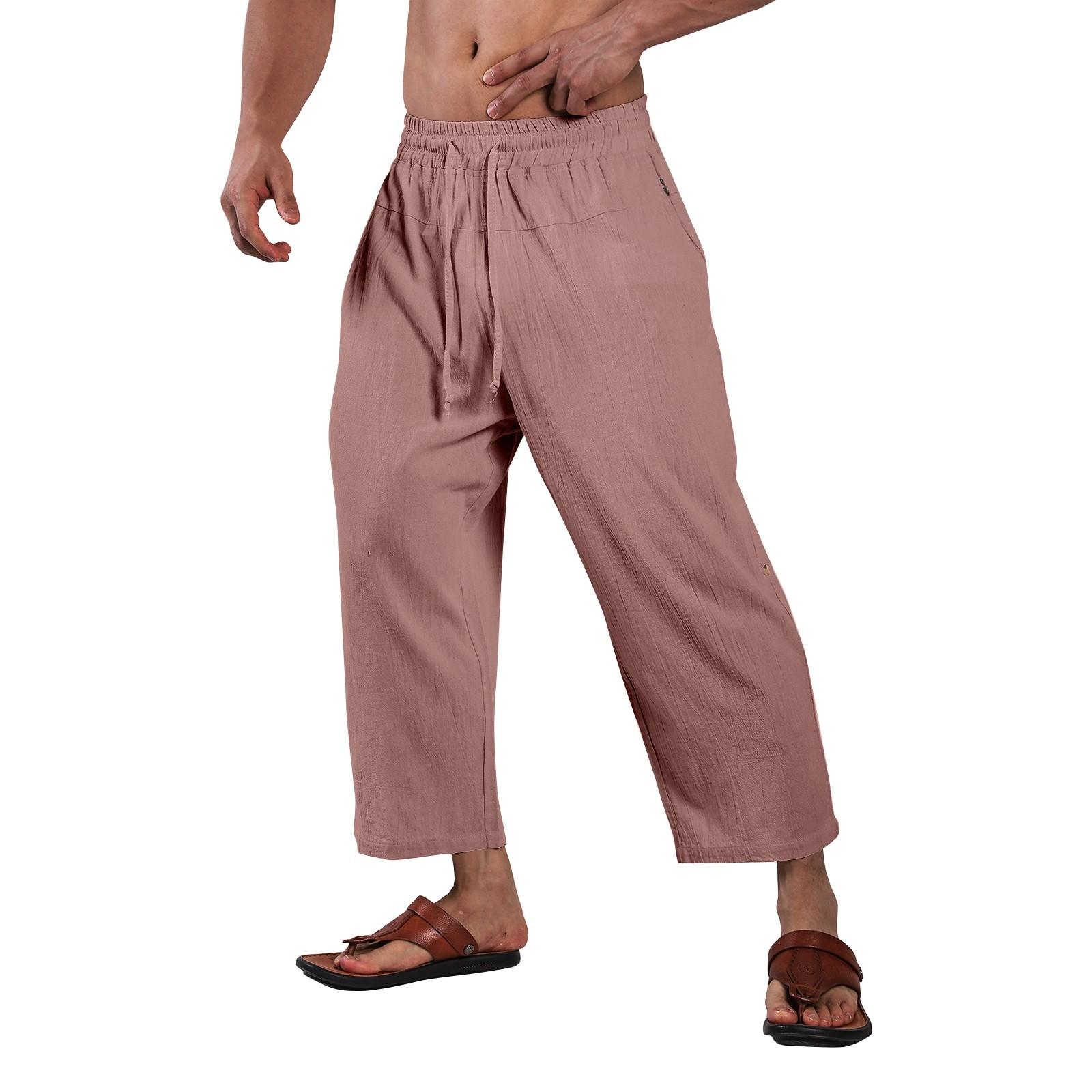 Мужские летние повседневные укороченные брюки на шнурке Мужские дышащие укороченные брюки из хлопка и льна XL красный