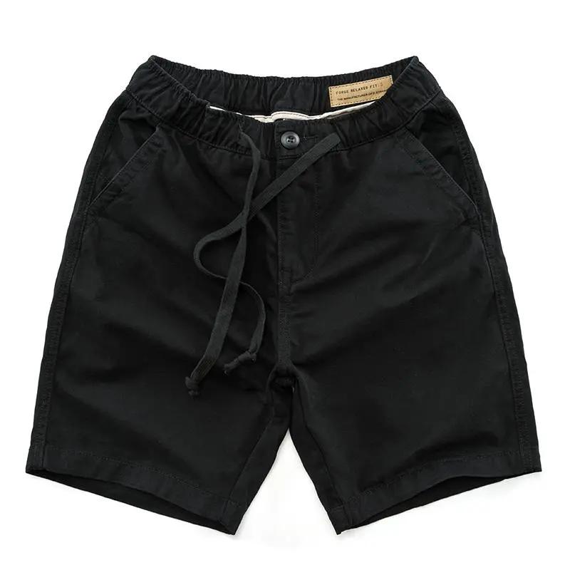 Мужские летние прямые повседневные спортивные шорты, стираные рабочие брюки с эластичным поясом, пять брюк XS чёрный