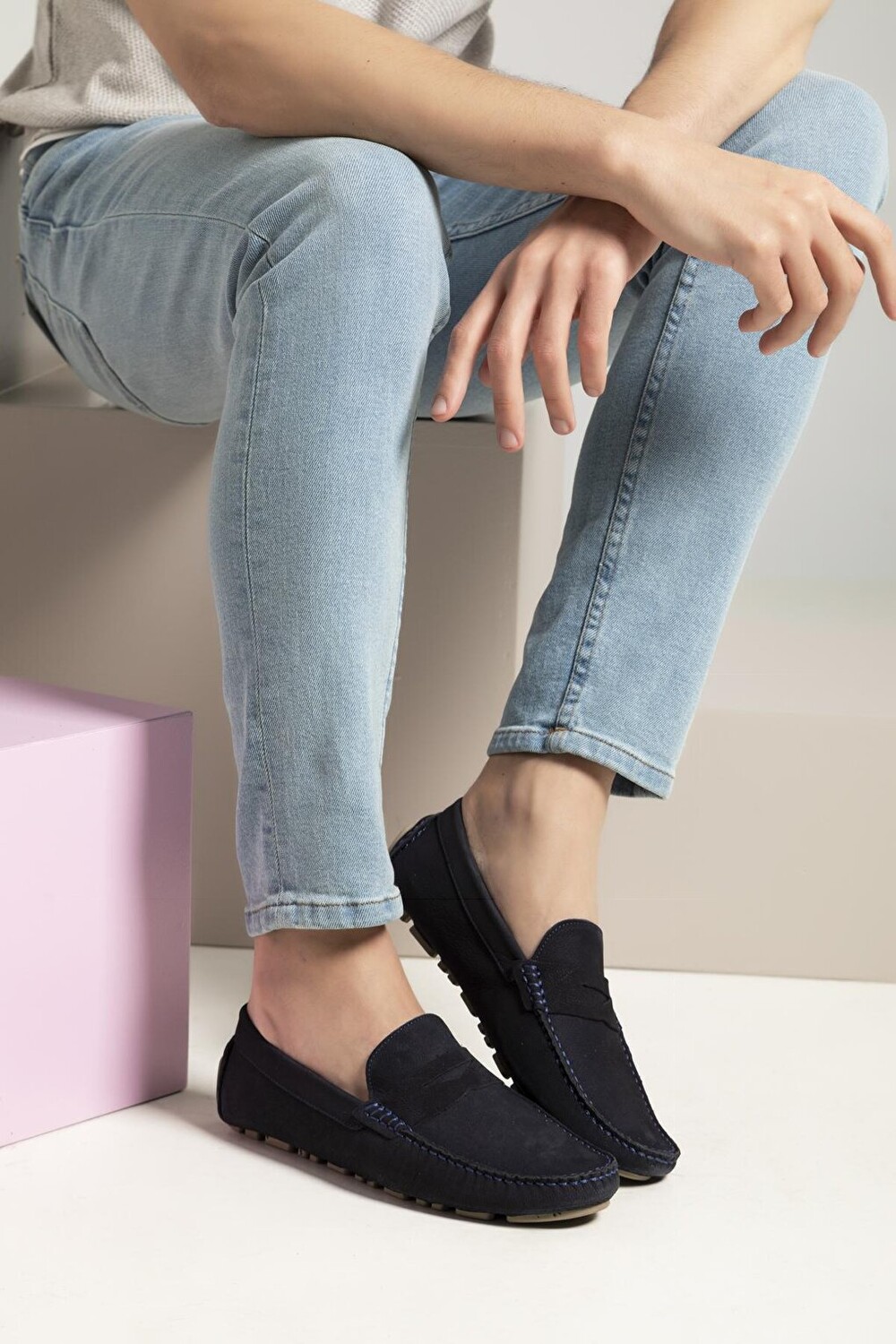 Мужские лоферы из натуральной кожи 131986 N3022 Темно-синий Ziya Ayakkabı