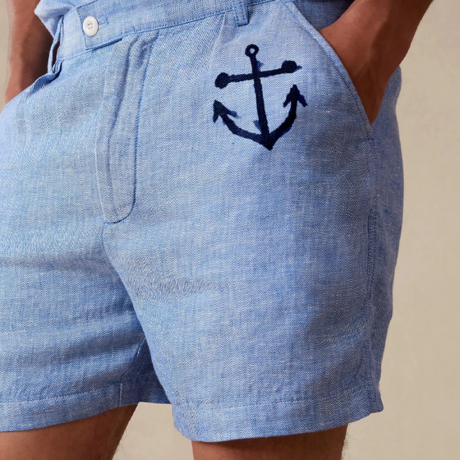 shorts,мужские льняные повседневные шорты в стиле ретро для отдыха пляжные гавайские шорты 5 дюймов