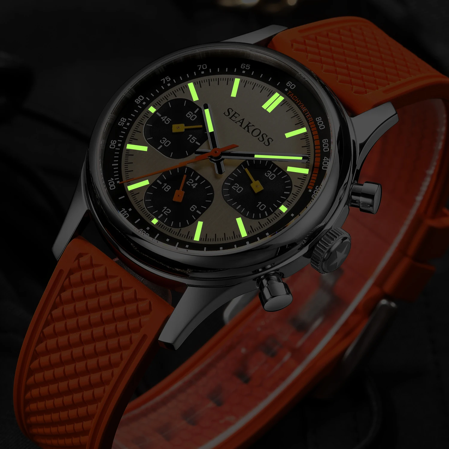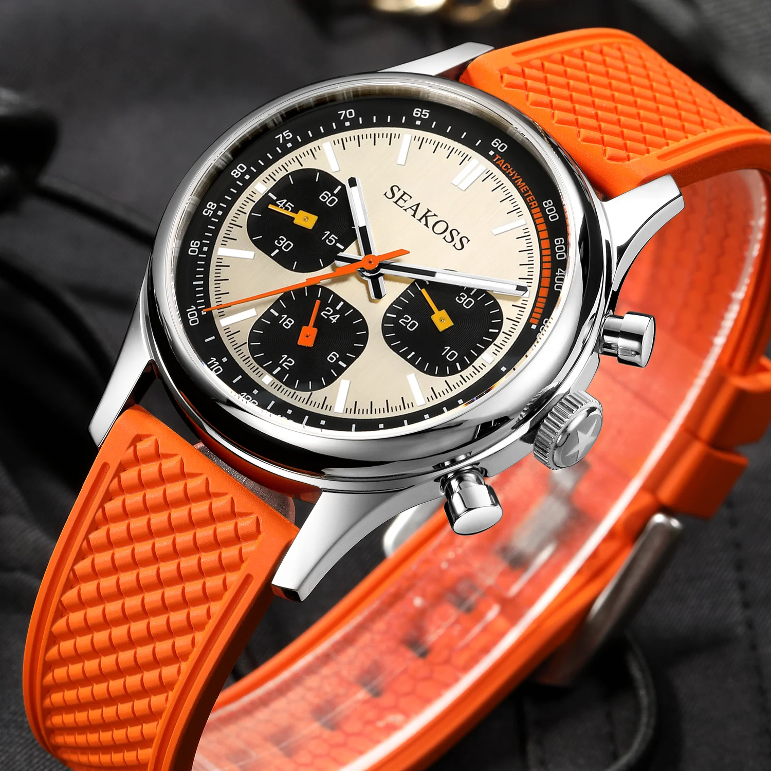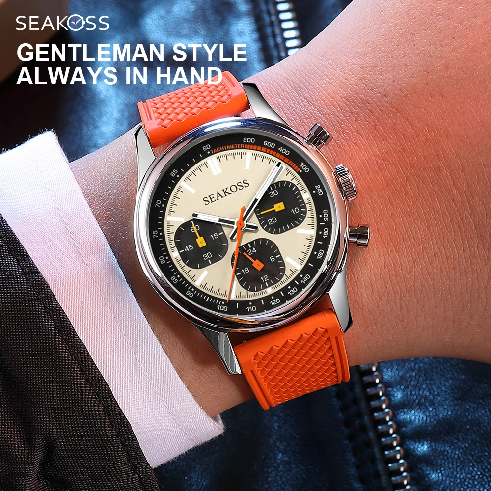 Мужские механические часы с хронографом SEAKOSS ST1903, силиконовые Супер Светящиеся Наручные часы с сапфиром, 1963, 40 мм