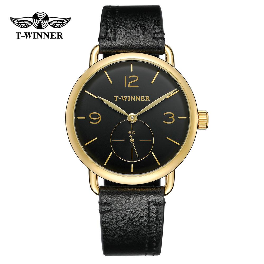Мужские механические часы T-Winner, простые деловые часы с ремнем, водонепроницаемые, маленькая секундная стрелка