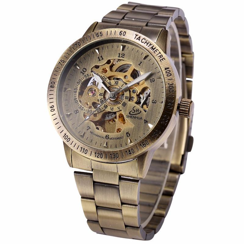 Мужские модные повседневные часы-скелетоны в европейском и американском стиле с автоматическим механизмом в стиле ретро из бронзы