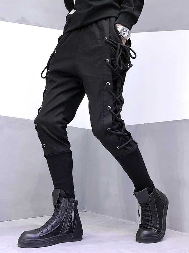 Мужские модные черные шаровары ARENS Techwear с оригинальным дизайном и темным шнурком