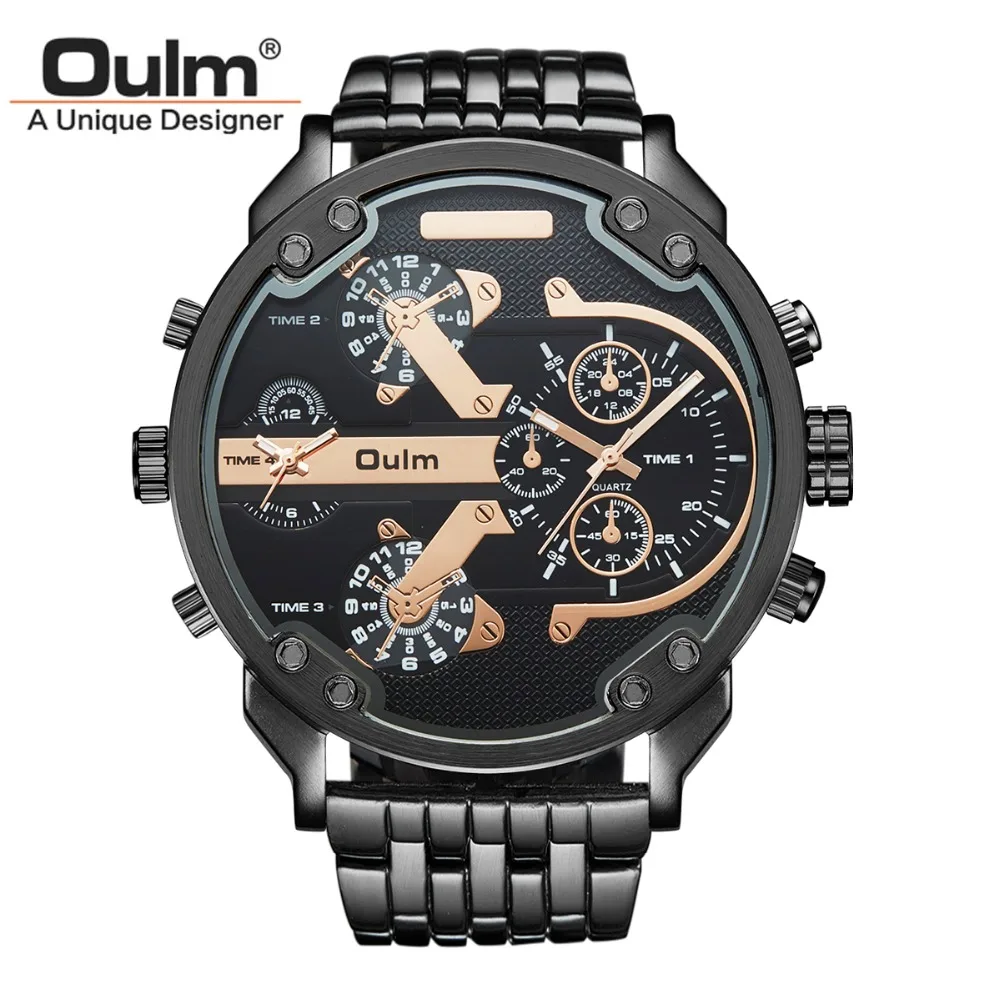Мужские наручные часы Oulm, с большим циферблатом, с 2 кварцевыми часами, с кожаным ремешком