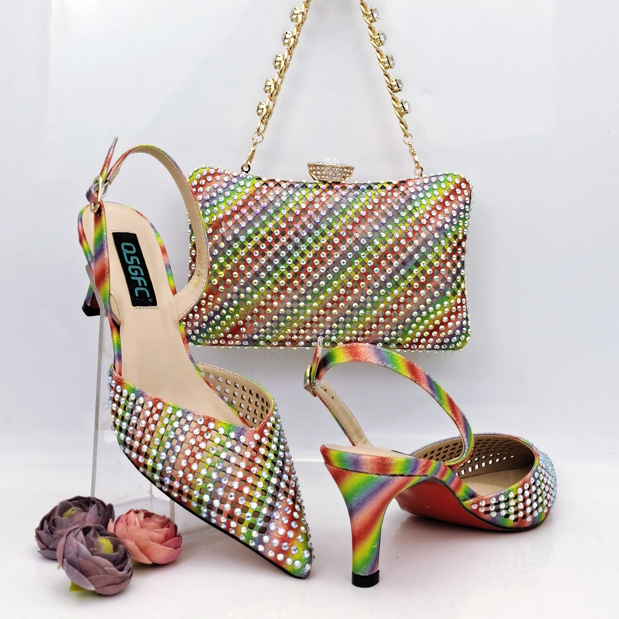 doershow Charming Shoes And Bag Matching Set With colorfulHot Selling Women Italian Shoes And Bag Set For Party Wedding! SRF1-32