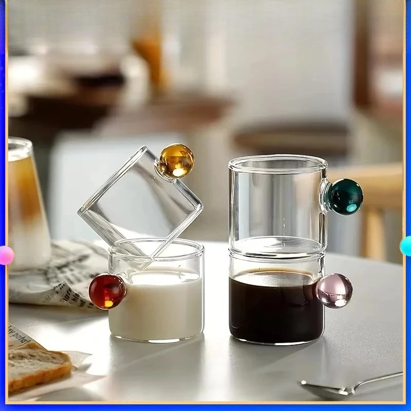 6 шт., чашки для эспрессо с шариковой ручкой, мини-чашки для кофе, термостойкая чайная чашка, стеклянная кружка для питья, посуда для напитков, 100 мл/3,38 унций