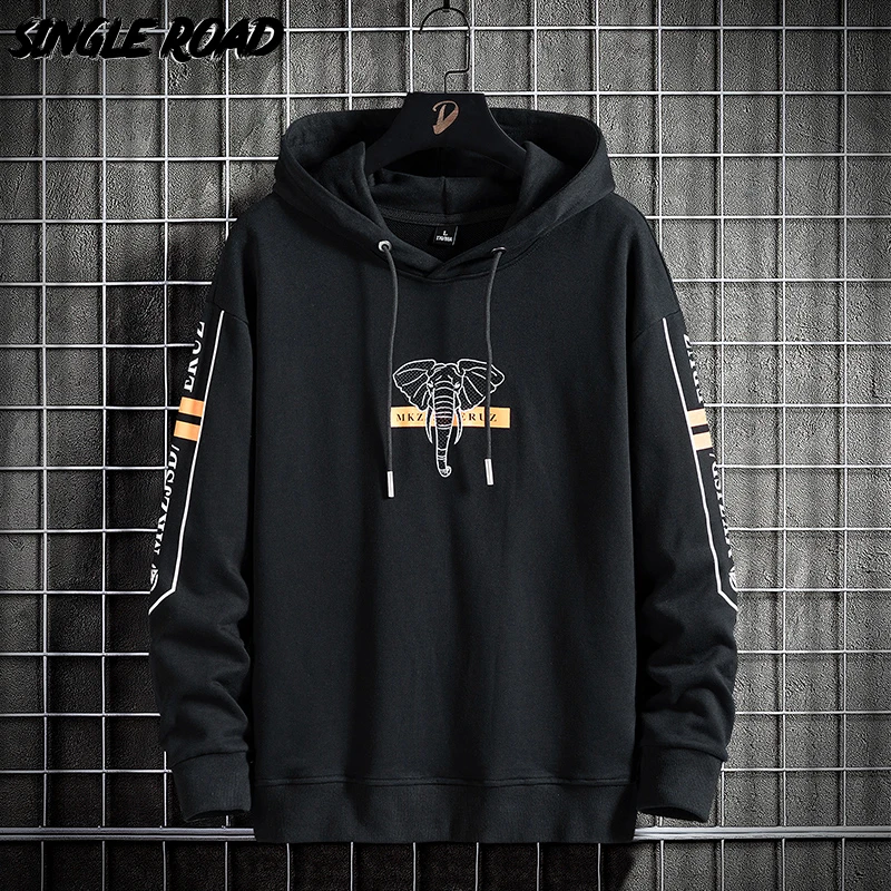 Мужские однодорожные толстовки с капюшоном, 2021, толстовка с принтом слона, размер d, Японская уличная одежда, хип-хоп, черная толстовка с капю...