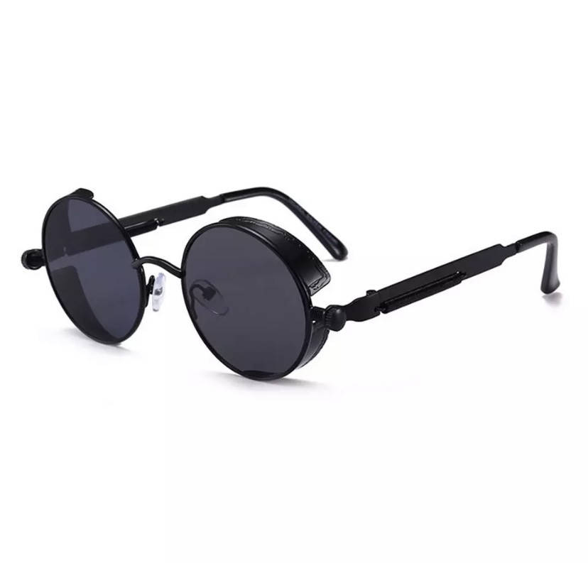 Мужские очки стимпанк, солнцезащитные очки черные круглой формы, круглые очки стим панк, Черный