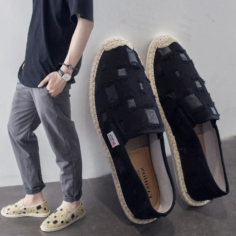 Мужские парусиновые туфли, Лоскутная удобная повседневная обувь с круглым носком и низким верхом, 2024