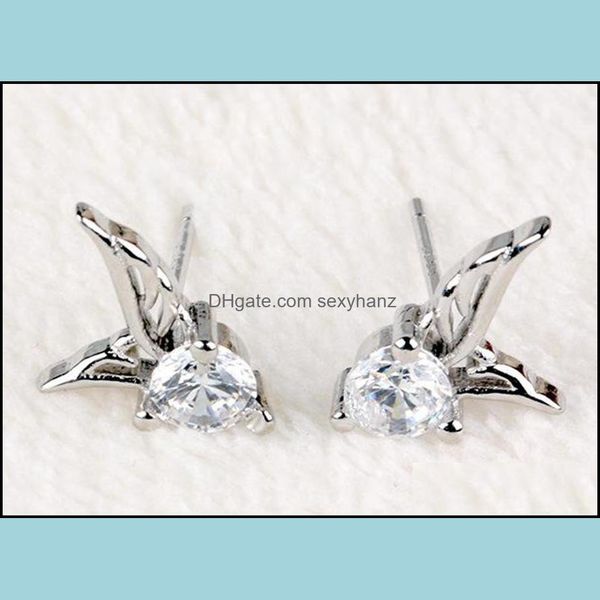 stud earrings wholesale fashion sterling sier zircon angel wing shaped ear studs drop delivery 2021 jewelry sexyhanz dhvfk, Golden;silver