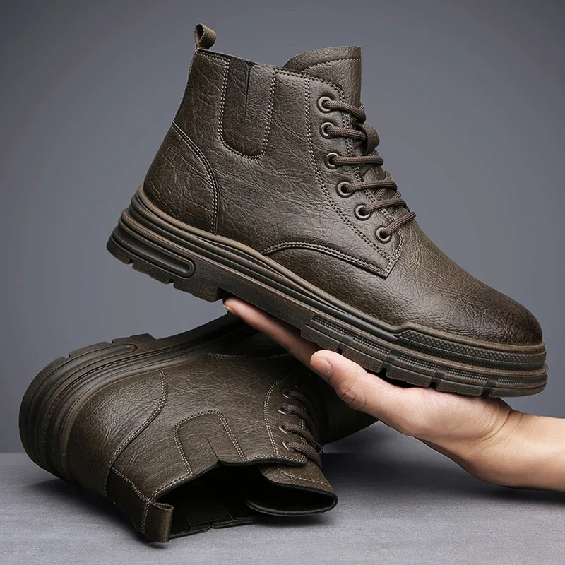 Мужские повседневные ботинки, кожаные ковбойские боевые тактические ботильоны челси на платформе, дизайнерские роскошные рабочие безопасные кроссовки 2023
