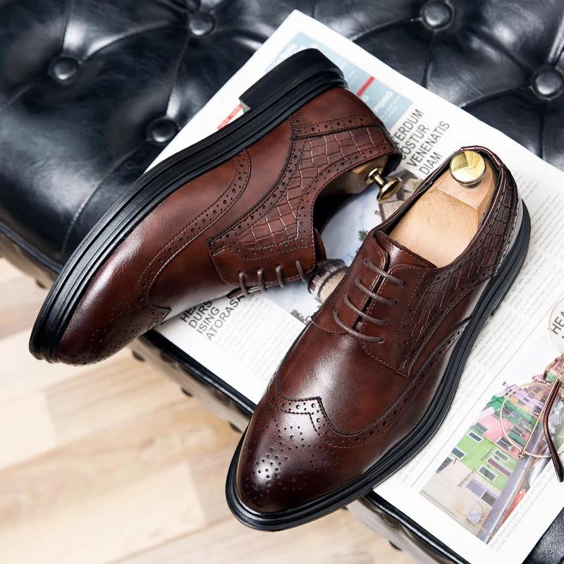 Мужские повседневные кожаные туфли, модные классические броги, роскошные туфли из натуральной коровьей кожи ручной работы на платформе и каблуках, черные свадебные туфли для жениха38-44 44 коричневый