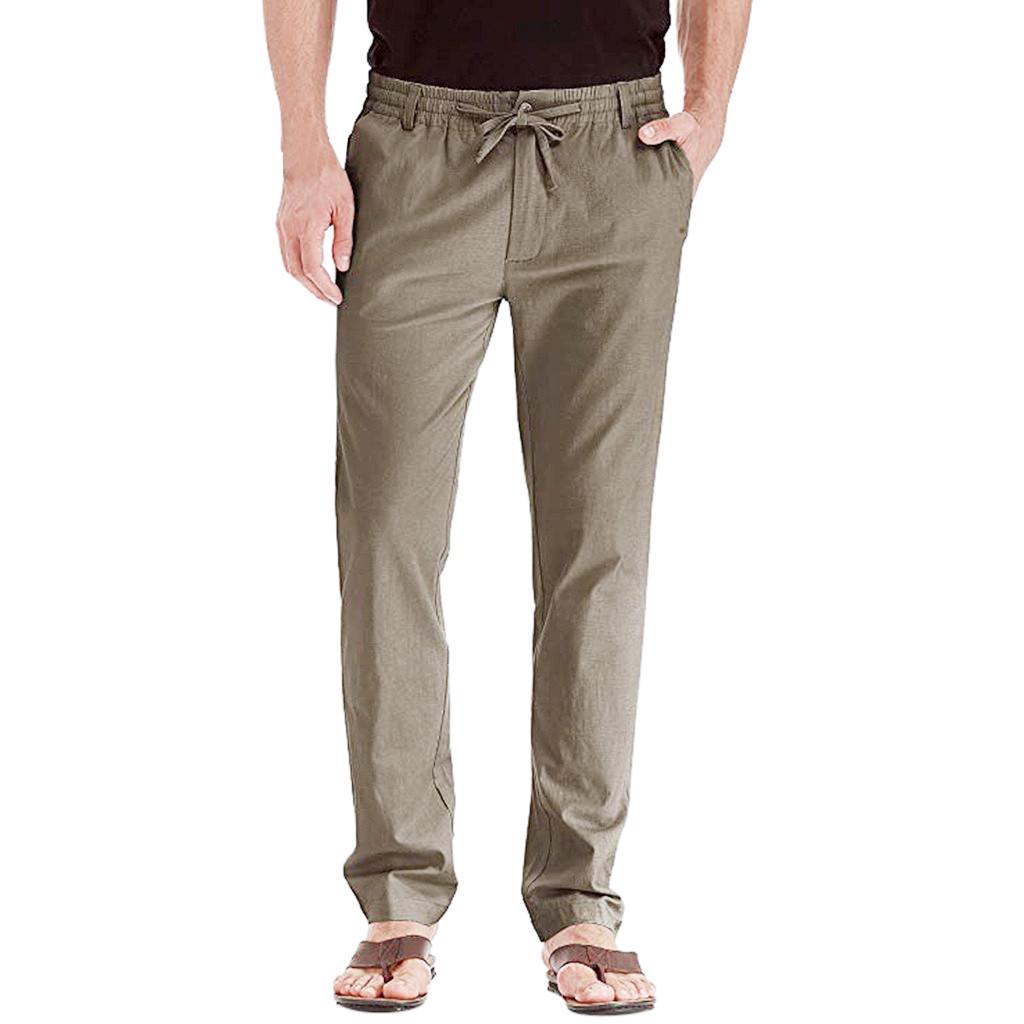 Мужские повседневные льняные дышащие свободные длинные брюки, однотонные прямые брюки M зелёный