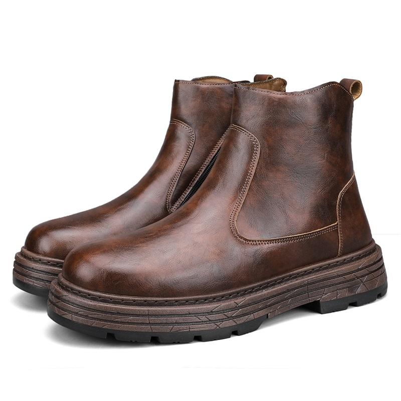 Мужские повседневные туфли из натуральной кожи в стиле ретро с высоким берцем и толстой подошвой, ботильоны 44 коричневый