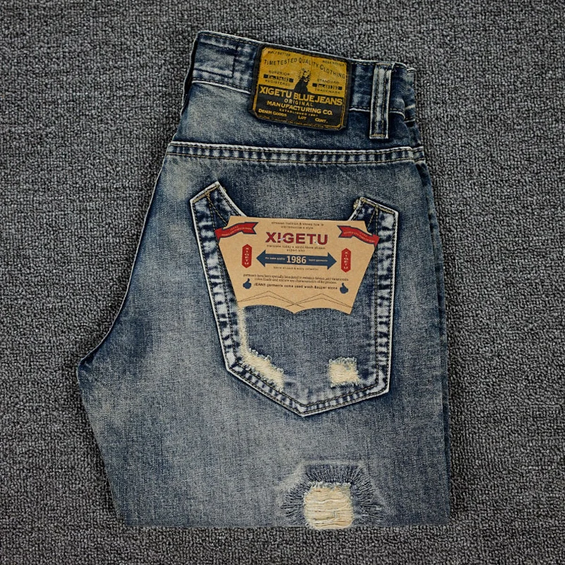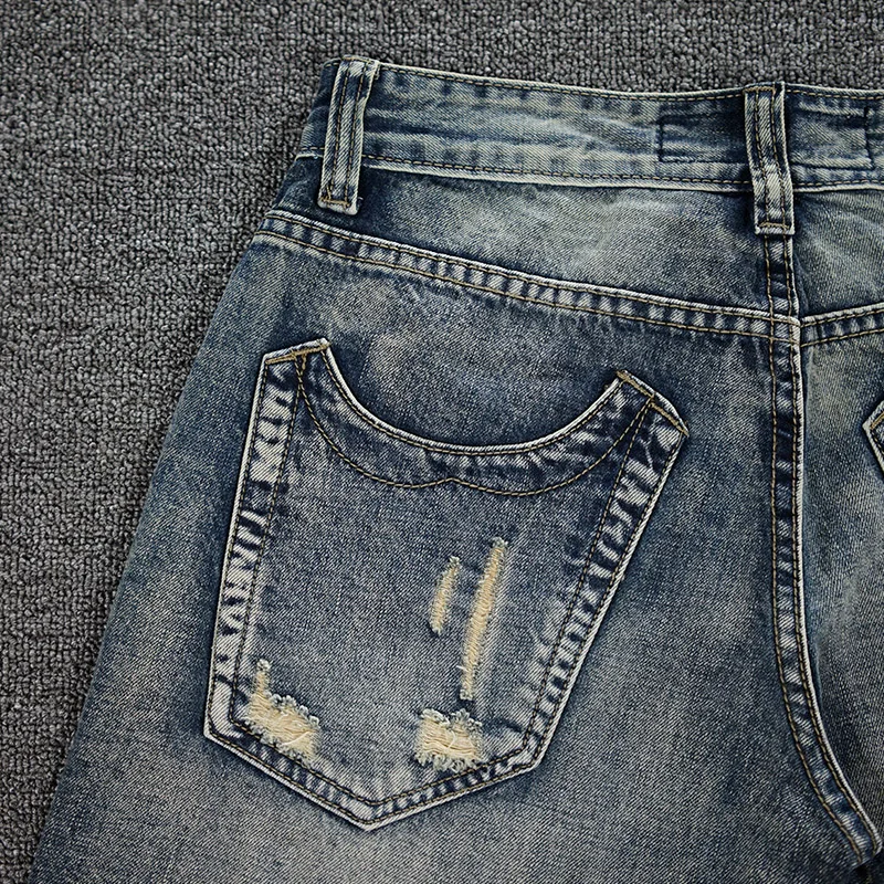 Мужские потертые Рваные джинсовые шорты, синие винтажные повседневные джинсовые шорты в стиле ретро, лето 2019