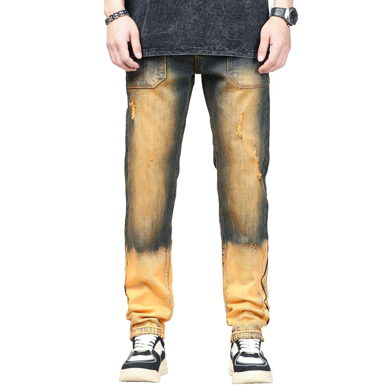Мужские прямые джинсы стрейч, повседневные брюки контрастных цветов, рваные брюки