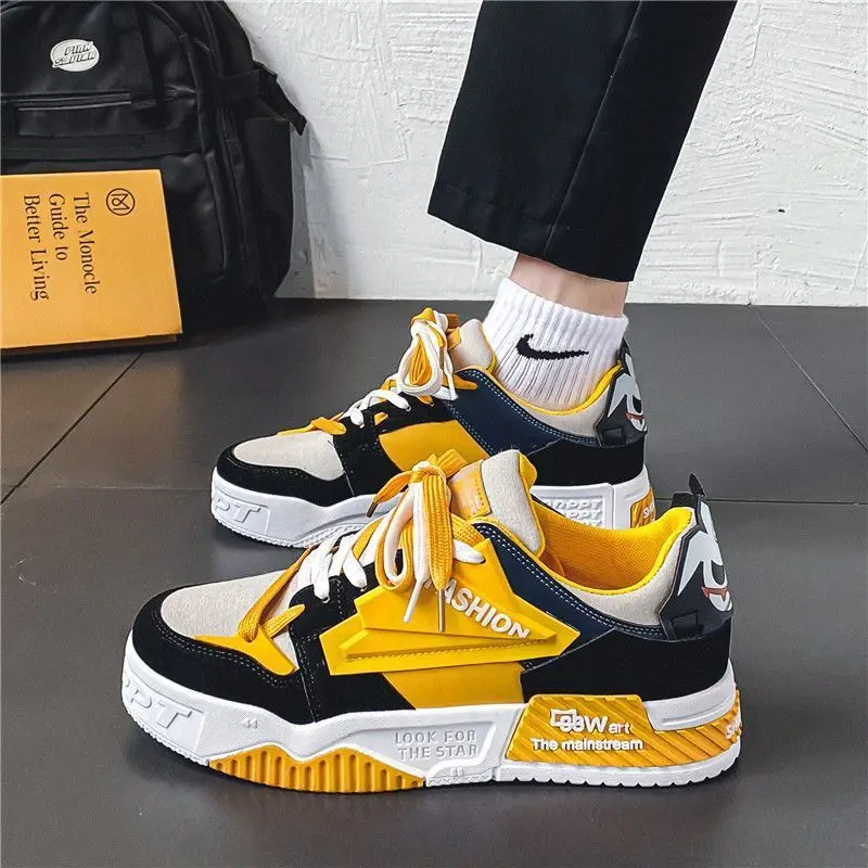 Мужские разноцветные кроссовки, новинка 2023, подходящие ко всему повседневные модные кроссовки в Корейском стиле, мужская обувь на платформе со шнуровкой