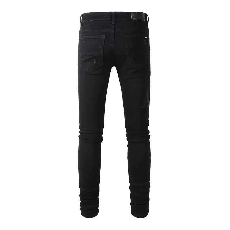 Мужские рваные джинсы в стиле пэчворк, черные облегающие рваные джинсы с вышивкой и надписью, модель 892