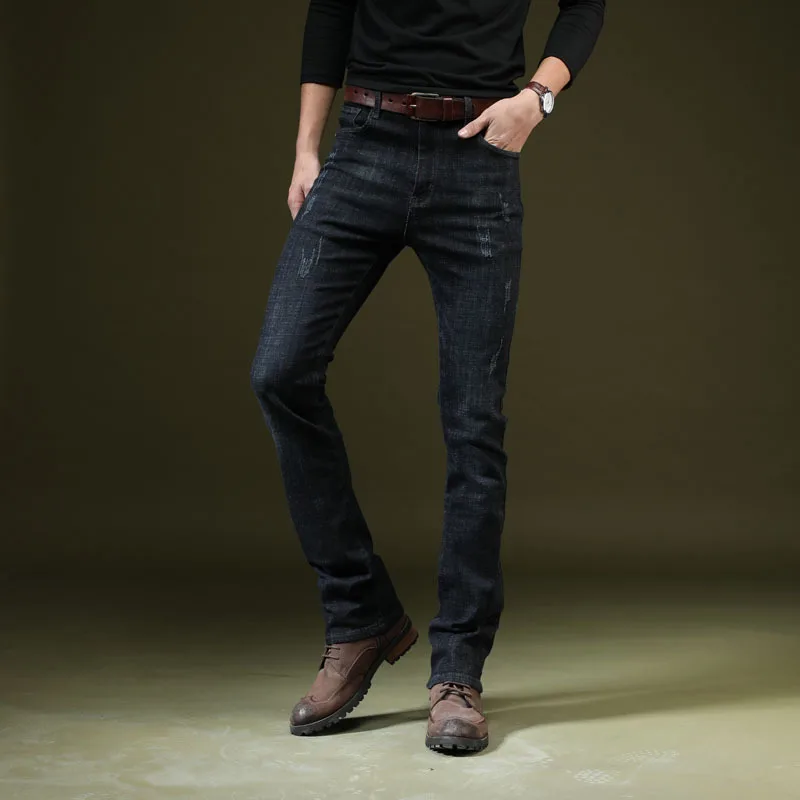 Мужские рваные расклешенные джинсы, темно-синие брюки из денима, размеры 28-38