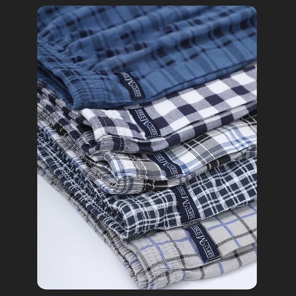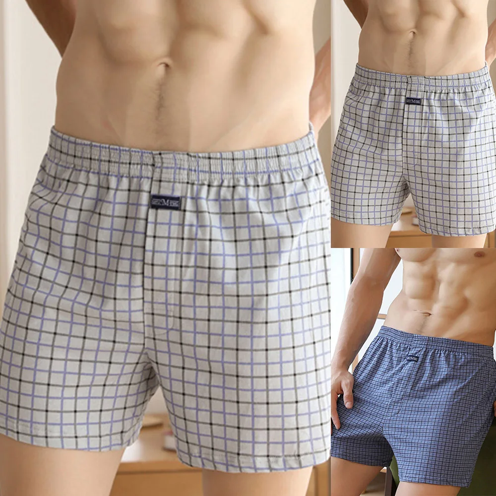 Мужские свободные трусы в клетку, синие хлопковые трусы-боксеры с принтом в виде стрелок, широкое нижнее белье,