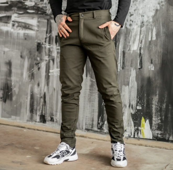 - Штаны имеют зауженный фасон, внизу штанины есть змейка;