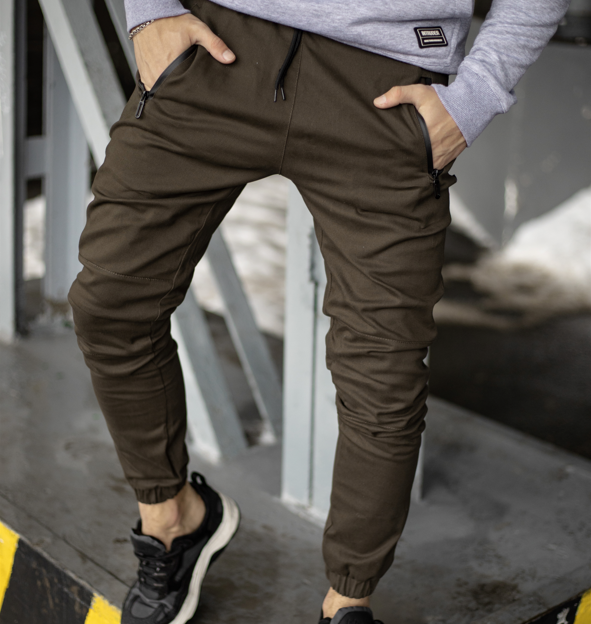- Штаны имеют зауженный фасон. Низ штанины имеет манжет на резинке;