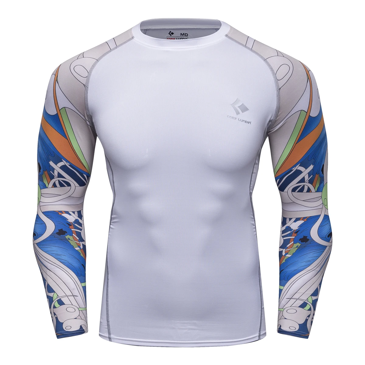 Мужские топы Jiu Jitsu с длинным рукавом, 3d принт, компрессионная тренировка Bjj, топ, защитная облегающая Повседневная белая футболка, мужские сп...