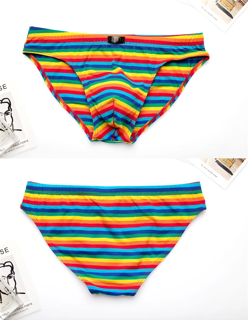 Мужские трусы, дышащие брифы с низкой посадкой, в полоску, с U-образным мешочком, сексуальные мужские трусы, шорты