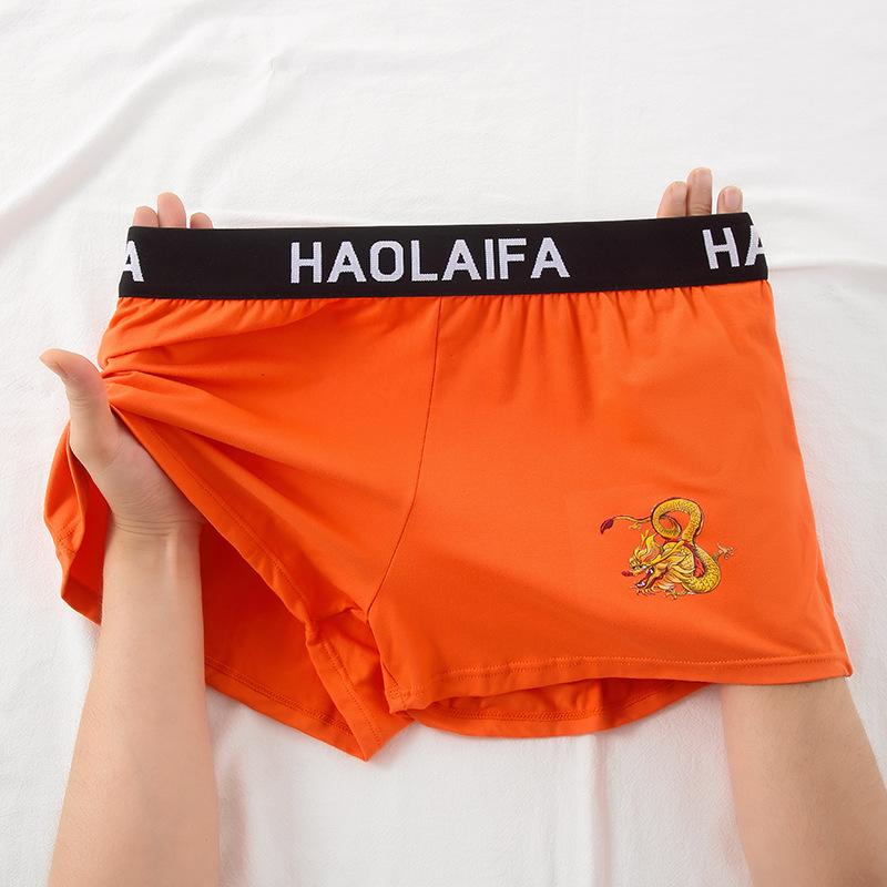 Мужские трусы с рисунком дракона, боксеры с широким поясом для мужчин, нижнее белье со средней посадкой, шорты, трусы Год Дракона L оранжевый