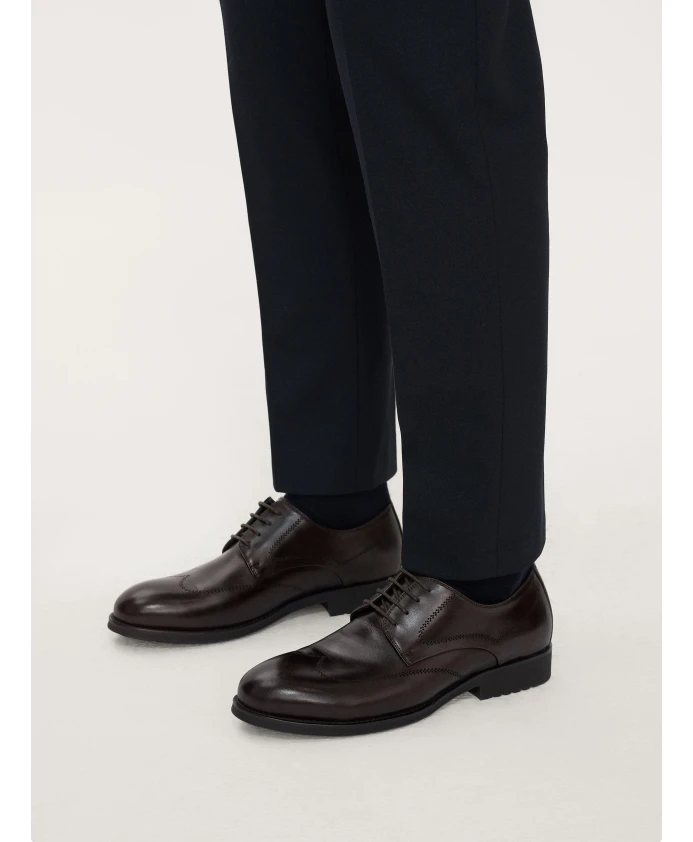 Коричневые мужские туфли дерби простого дизайна — вневременная, минималистичная модель, которая подойдет ко всему и на любой случай. Верх из гладкой кожи украшен красивым перфорированным узором, подчеркивающим утонченную и элегантную посадку. Представленные туфли дерби не только великолепно выглядят, но и, что немаловажно, исключительно удобны. Внутренняя часть обуви, облицованная нежной овечьей кожей, гарантирует гигиенические условия и высокий уровень комфорта.